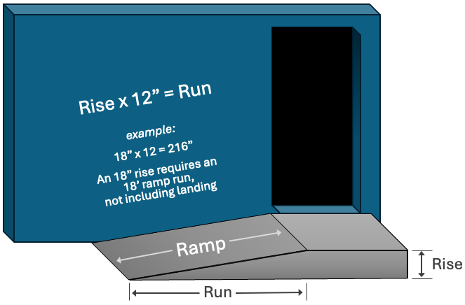 Interior space is precious in today’s commercial and residential environments. ADA Standards for Accessible Design require one foot of ramp length for every one inch in needed rise. Just a few steps can result in a ramp 20′ long.